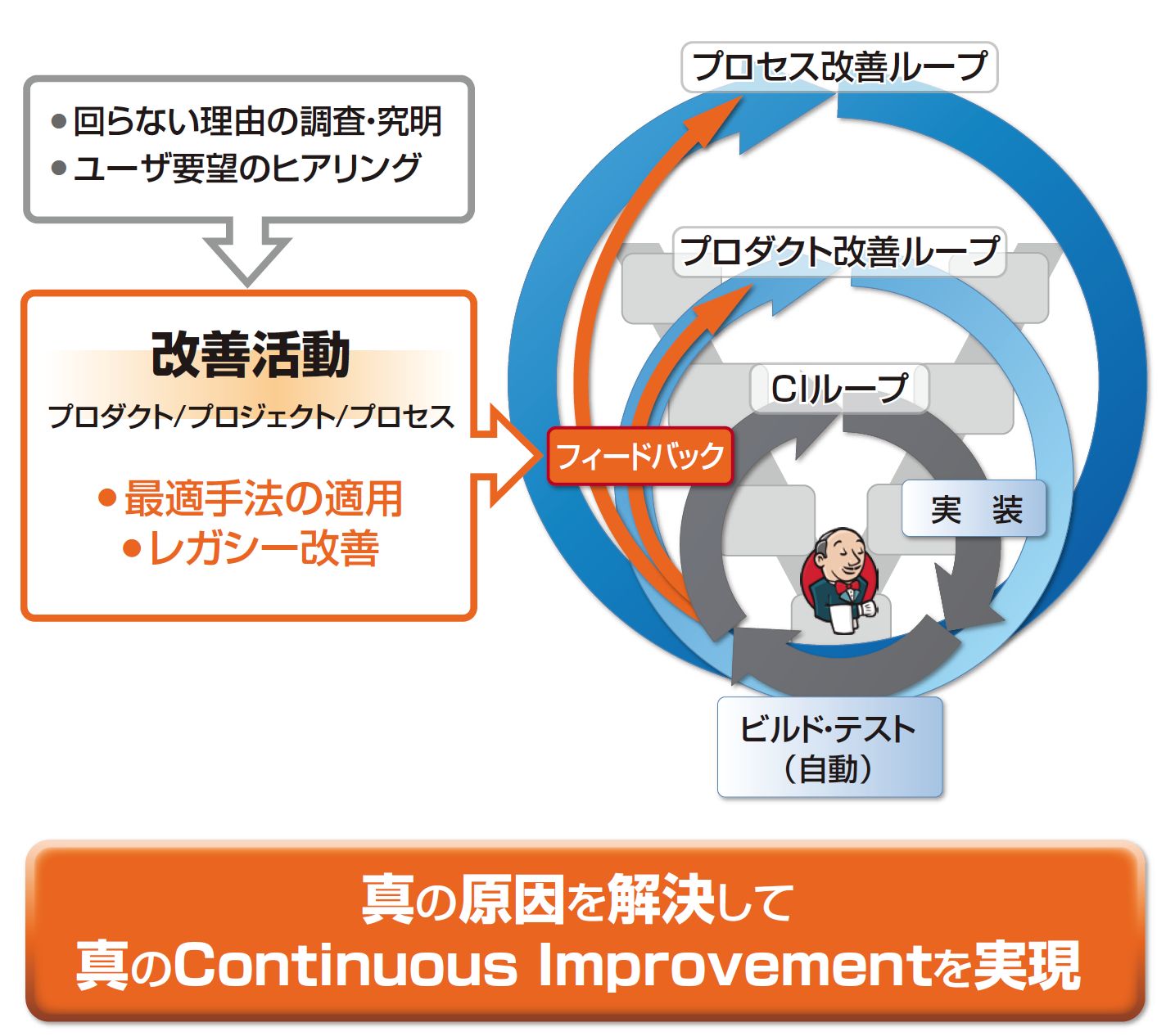 CI環境・プロセスが整い、運用開始してもサイクルが回らない部分が出てきます。現場での問題解決経験を持つコンサルタントが、問題改善に参加し、CIから始まる現場改善のフィードバックループの醸成を支援します。